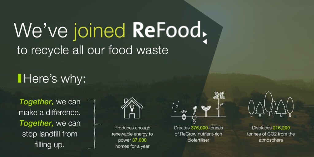 We’re proud to be a business that already achieves zero waste to landfill. Still, that doesn’t stop us from making smarter choices everyday. We recently signed up with ReFood UK to directly handle the waste food from our onsite catering facilities, using anaerobic digestion to generate renewable energy and nutrient-rich biofertiliser.