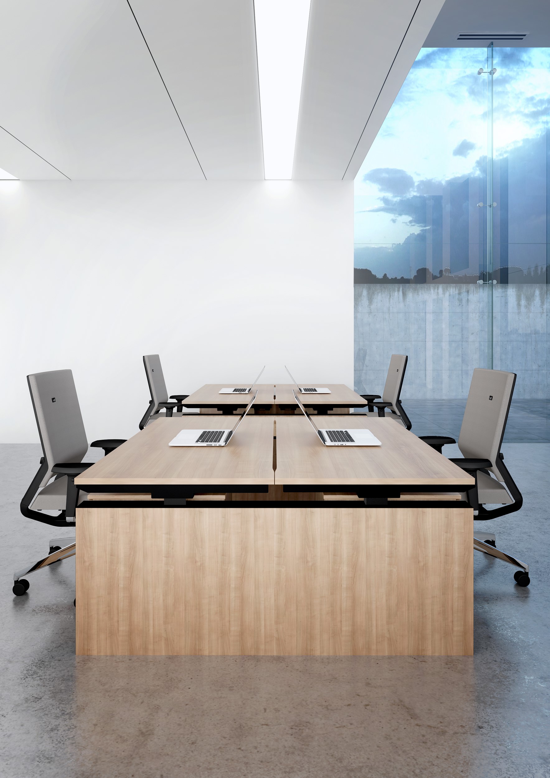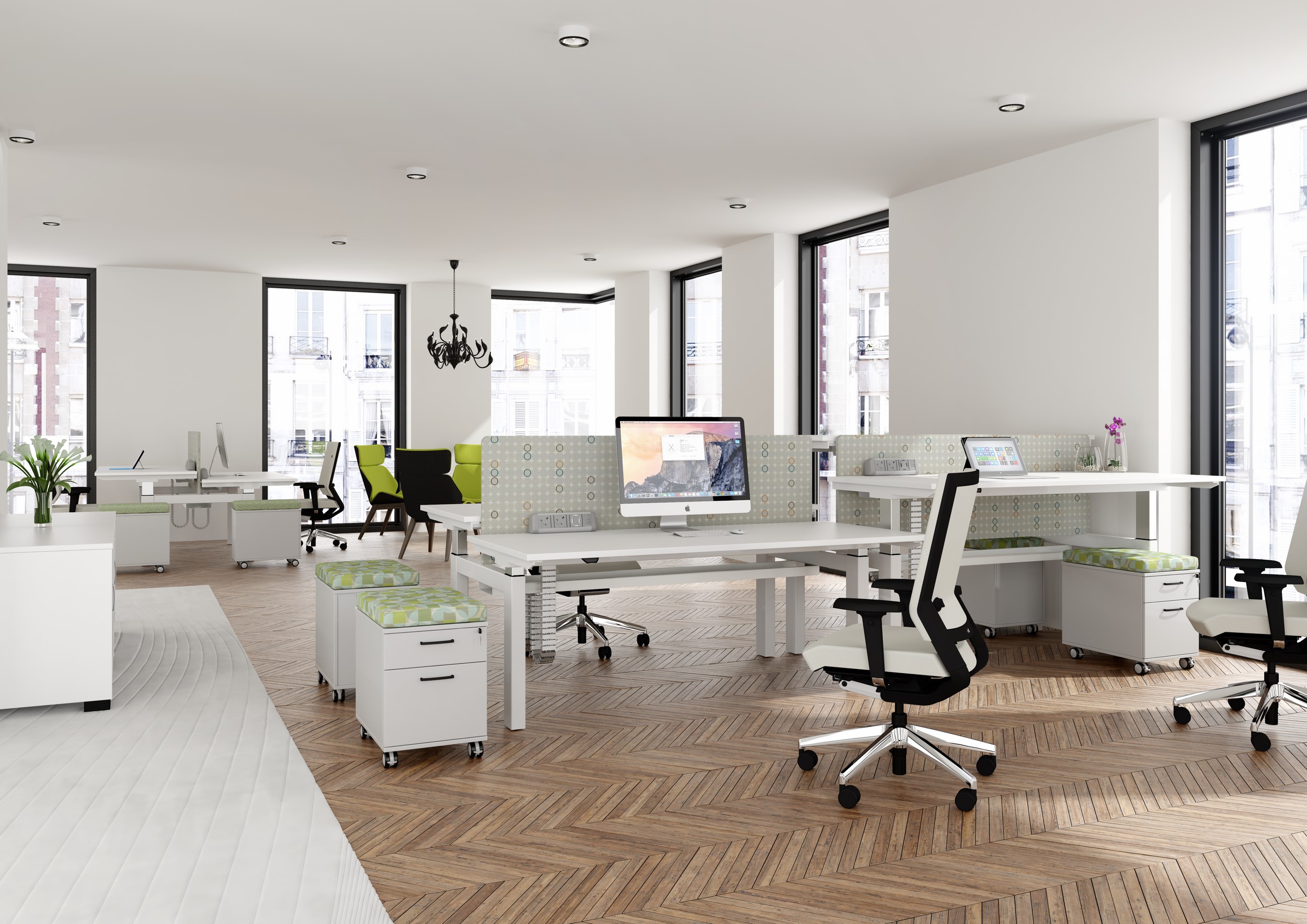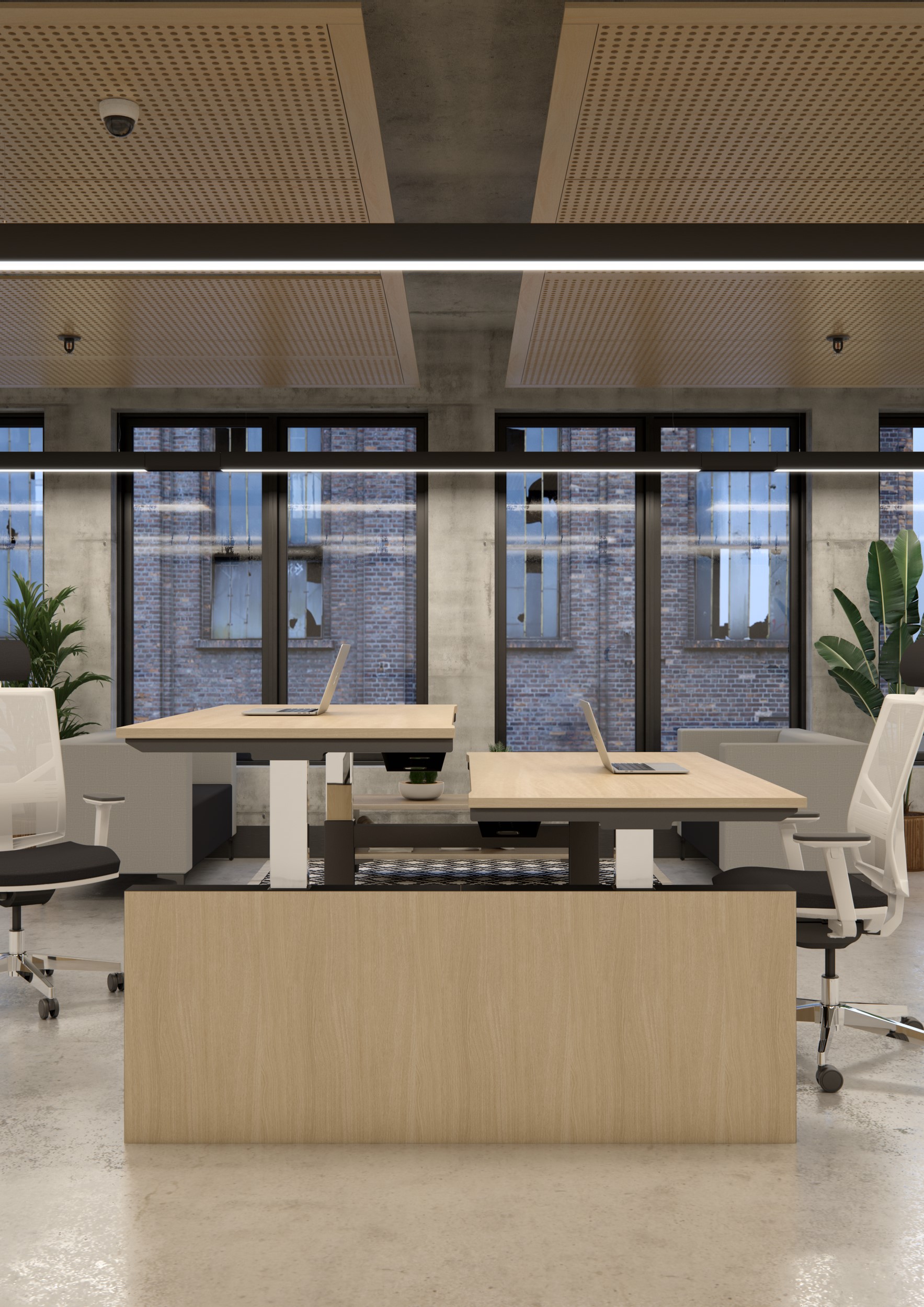 All components are fully interchangeable for maximum flexibility. The sit-stand aspect brings significant health benefits encouraging wellbeing within the office environment. Height adjustable workstations offer height variation from 685mm to 1185mm. Double benches are supplied with sliding tops as standard, enhancing the flexibility of the desking system.