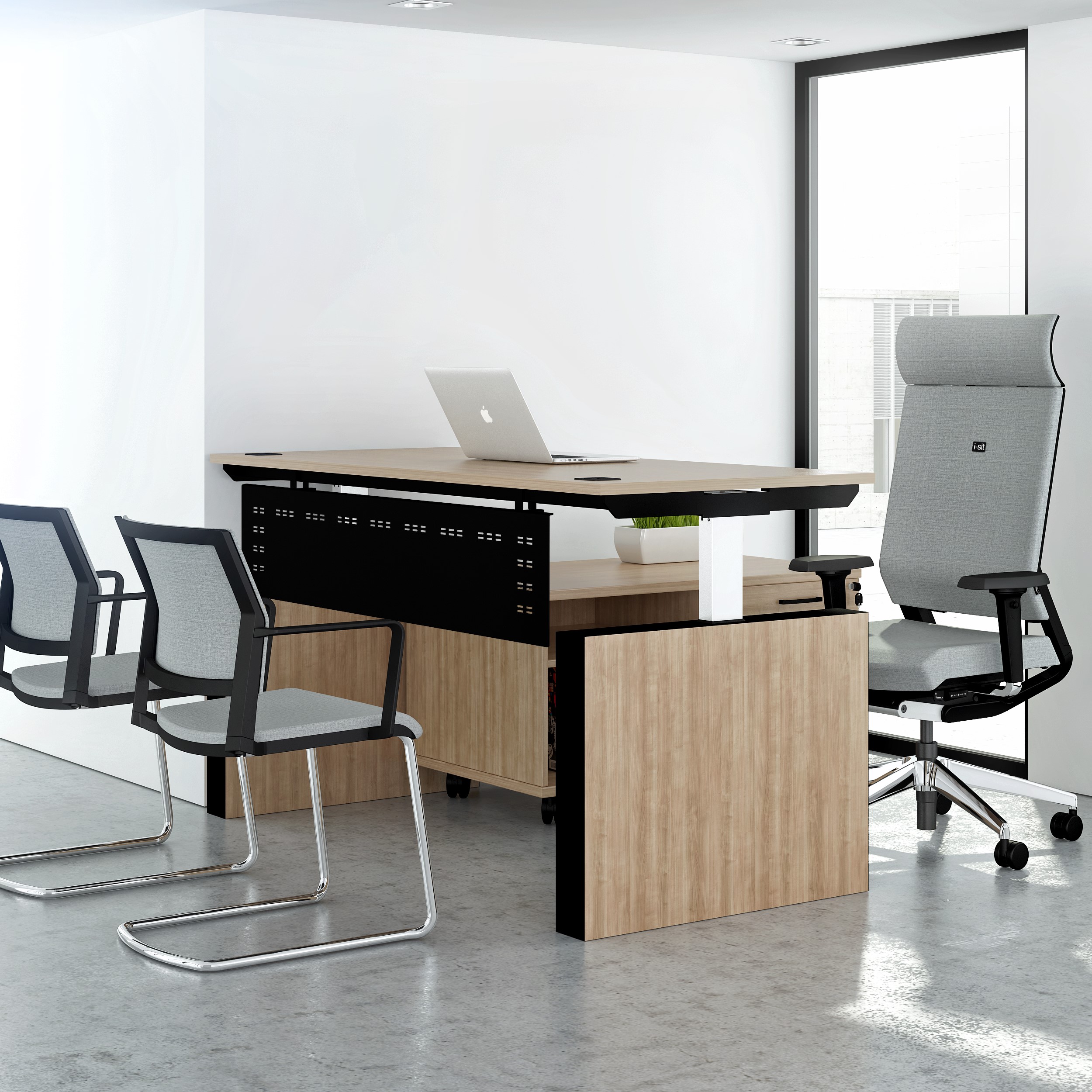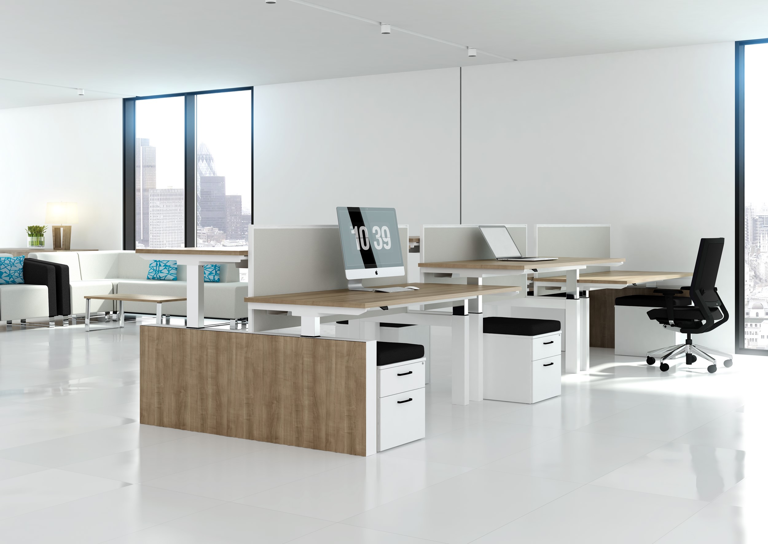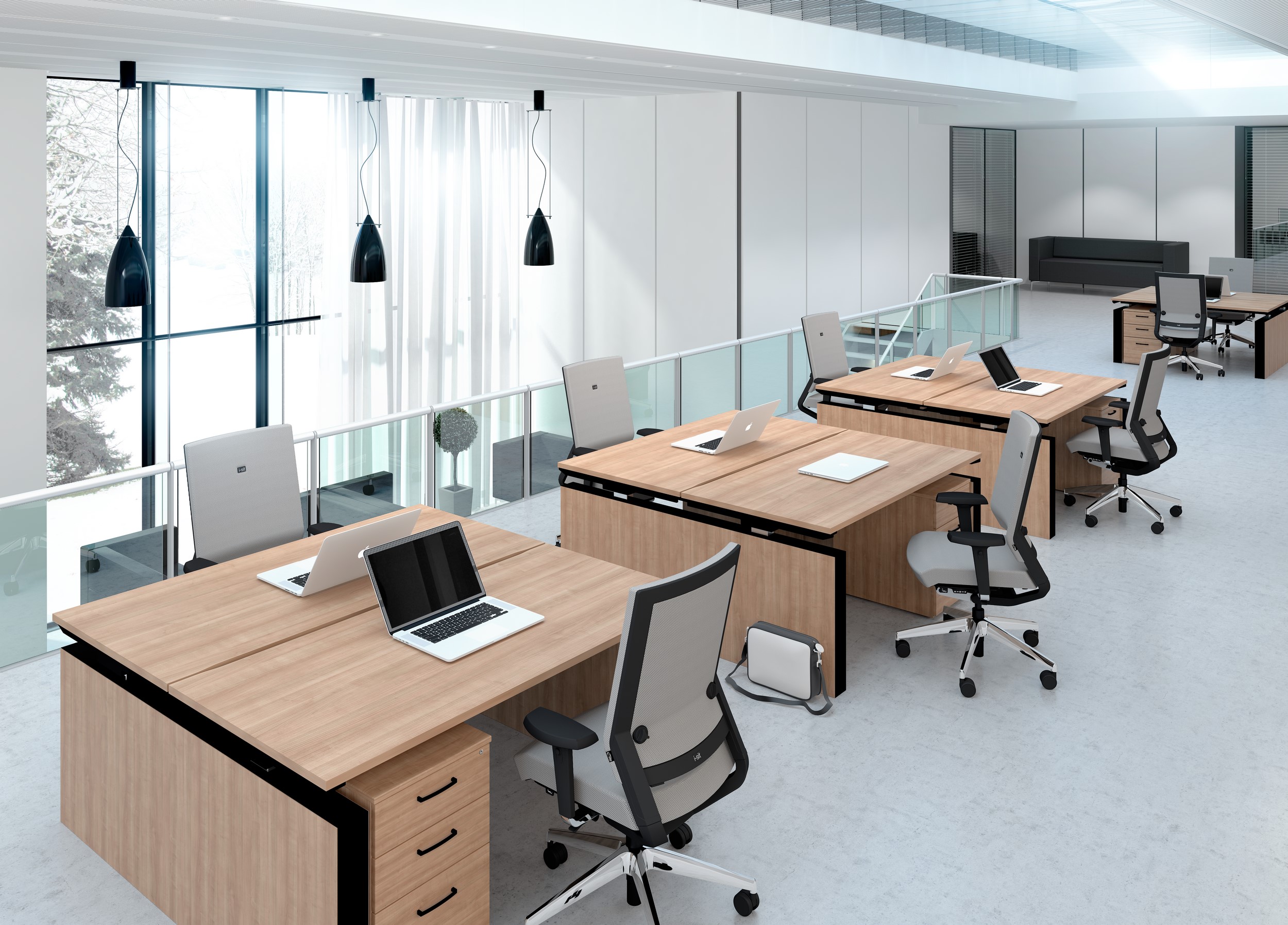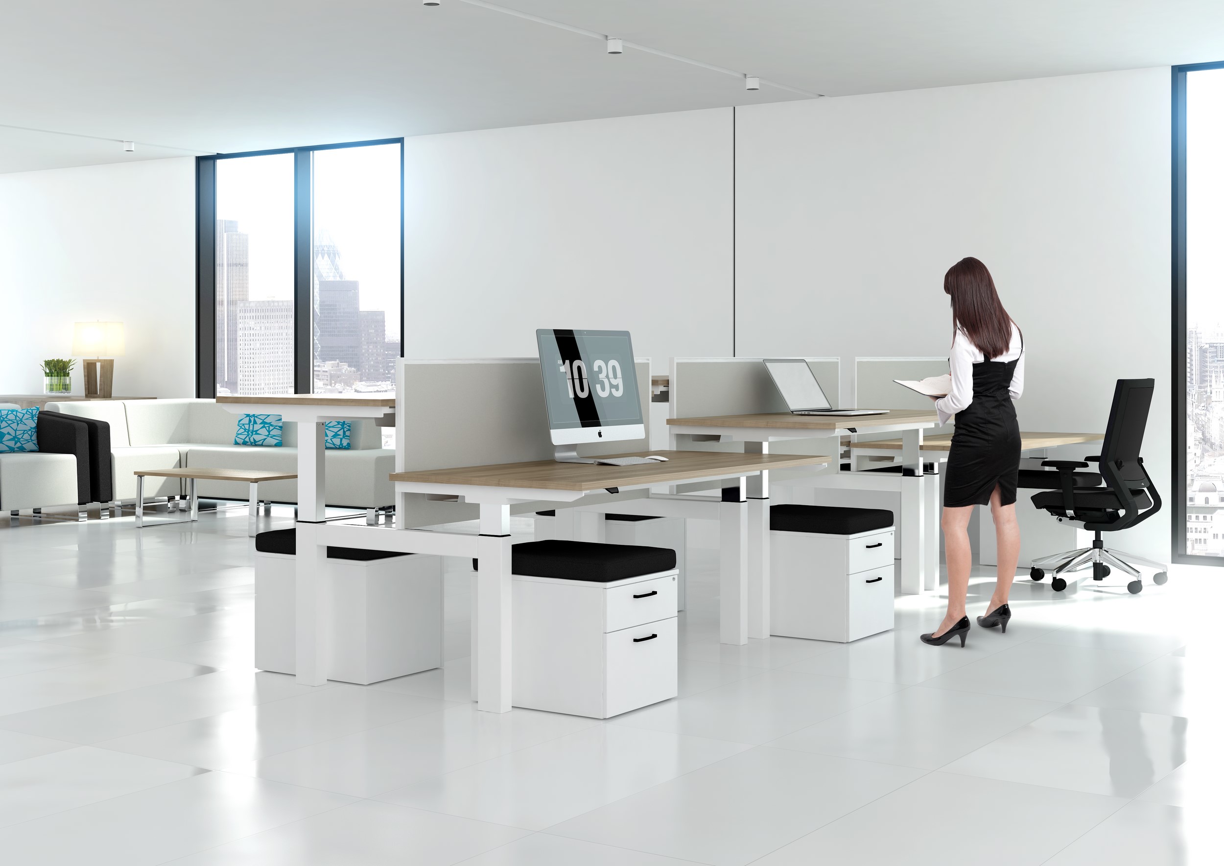 All components are fully interchangeable for maximum flexibility. The sit-stand aspect brings significant health benefits encouraging wellbeing within the office environment. Height adjustable workstations offer height variation from 685mm to 1185mm. Double benches are supplied with sliding tops as standard, enhancing the flexibility of the desking system.