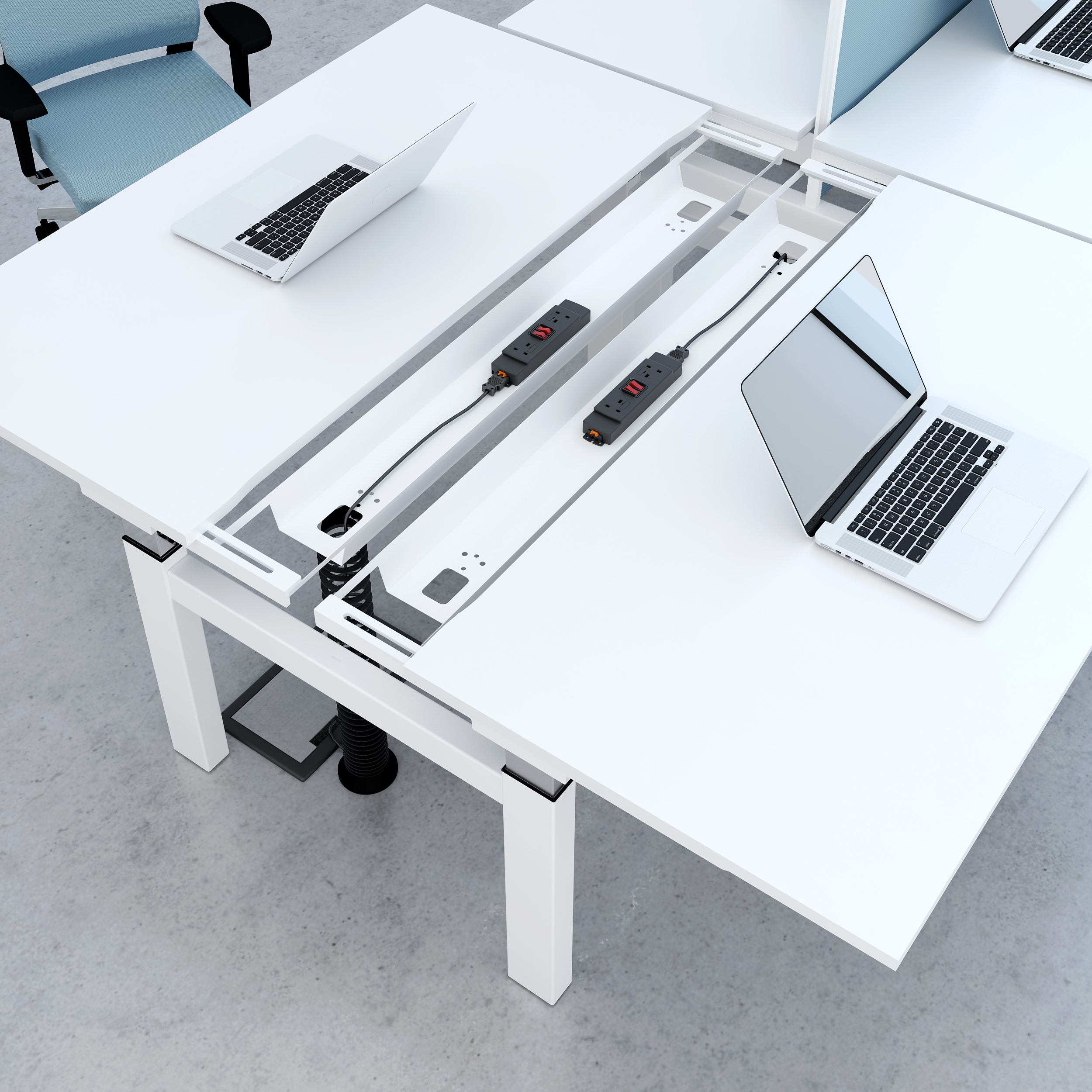 Horizontal wire management is inclusive under each desk top on both the single and double benches. Decorative slab end panels can be fitted to both single and double workstations to enhance the aesthetics at the end of a run of workstations, offering a more executive appearance.