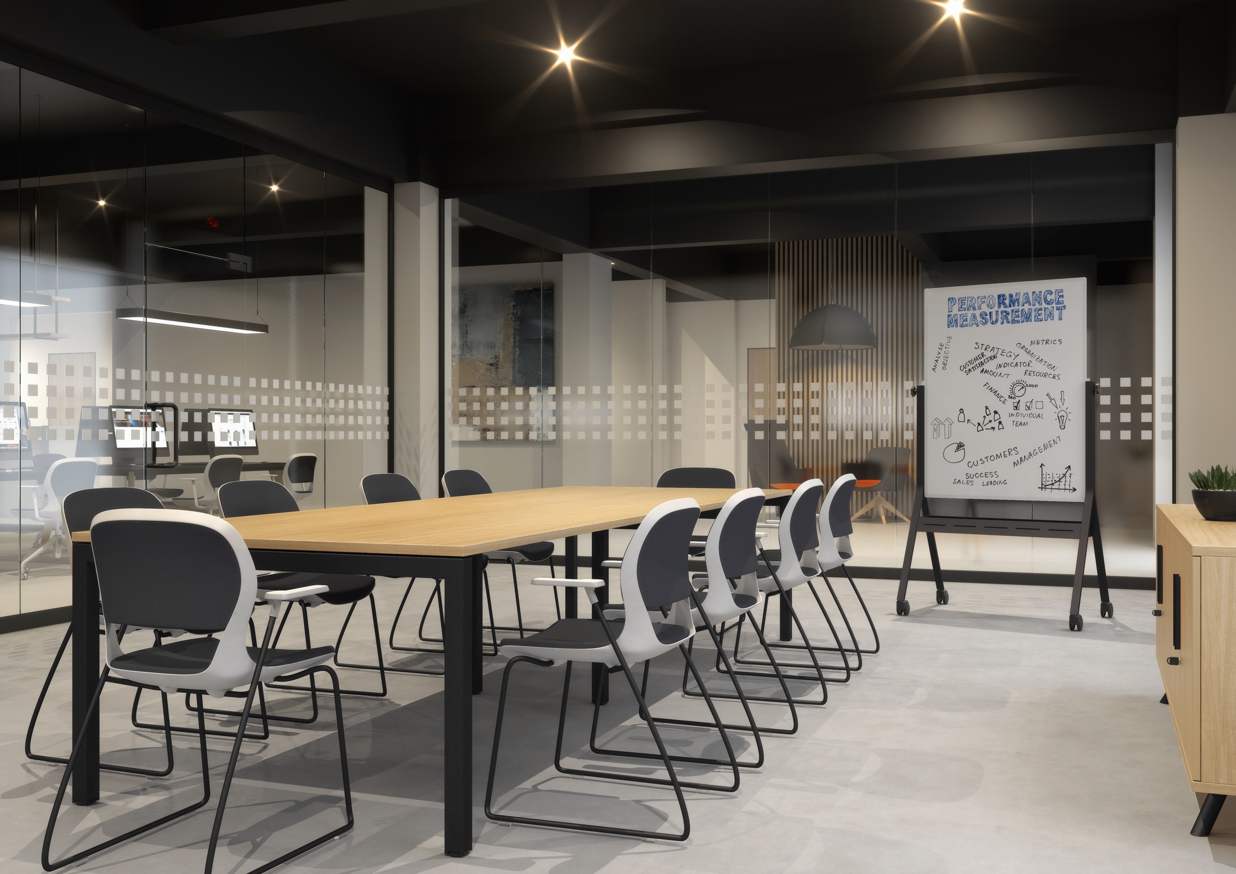 The mobile whiteboard offers a traditional solution for presentation areas, with a modern design to fit contemporary spaces. The leg frame can be finished in a choice of 3 standard metalworks or 6 premium finishes. The board itself can be rotated a full 360° and features a drywipe, magnetic surface.
