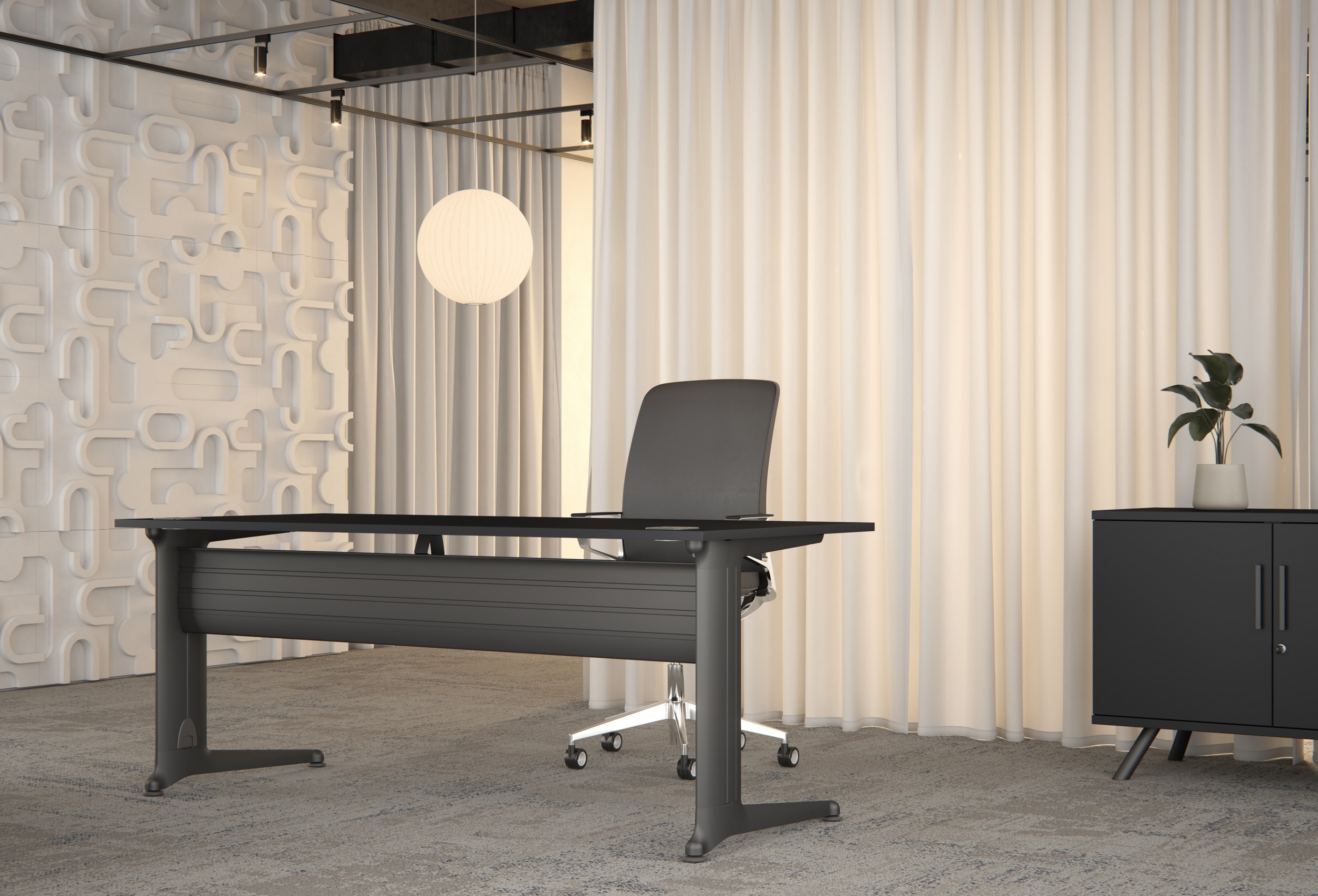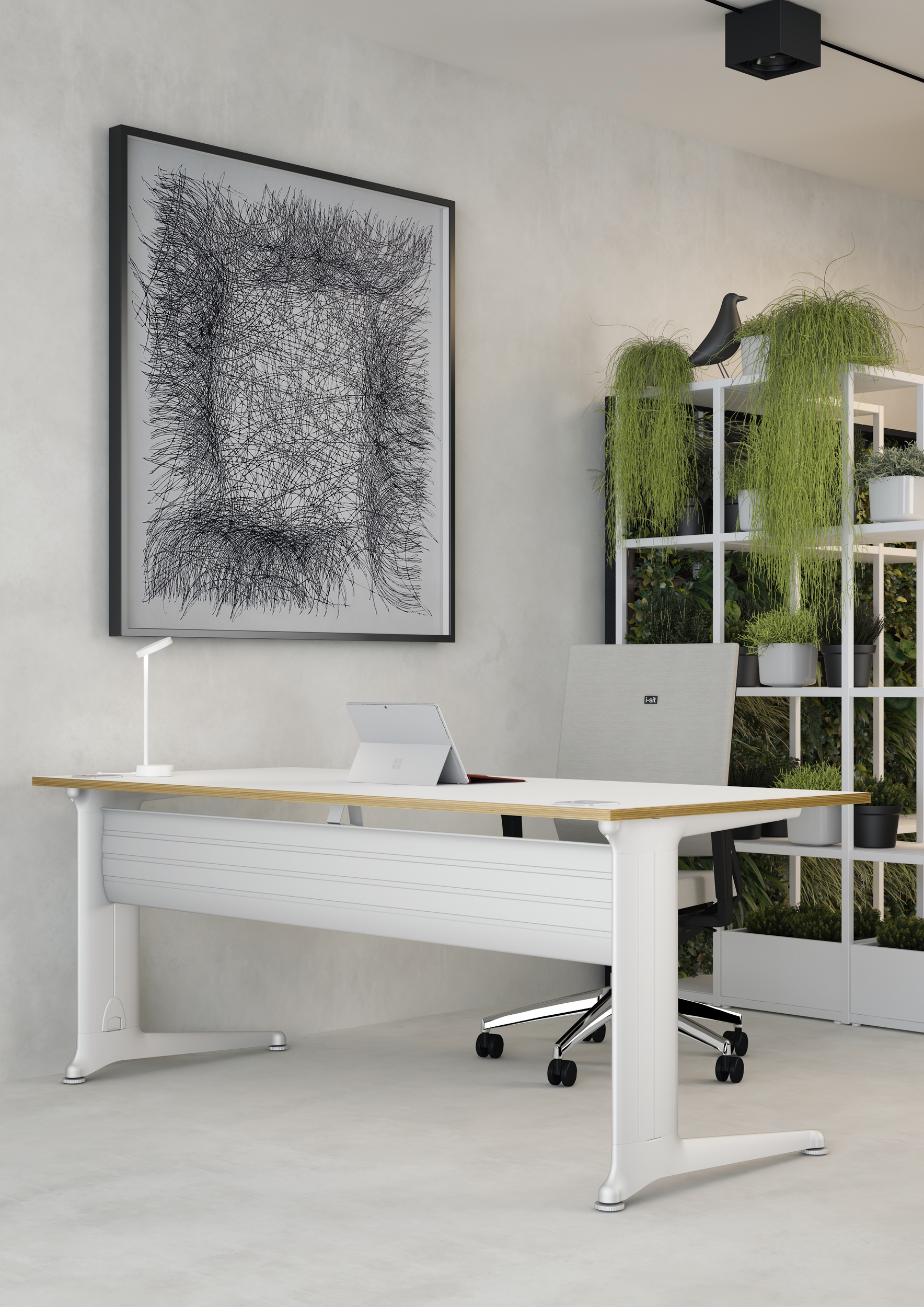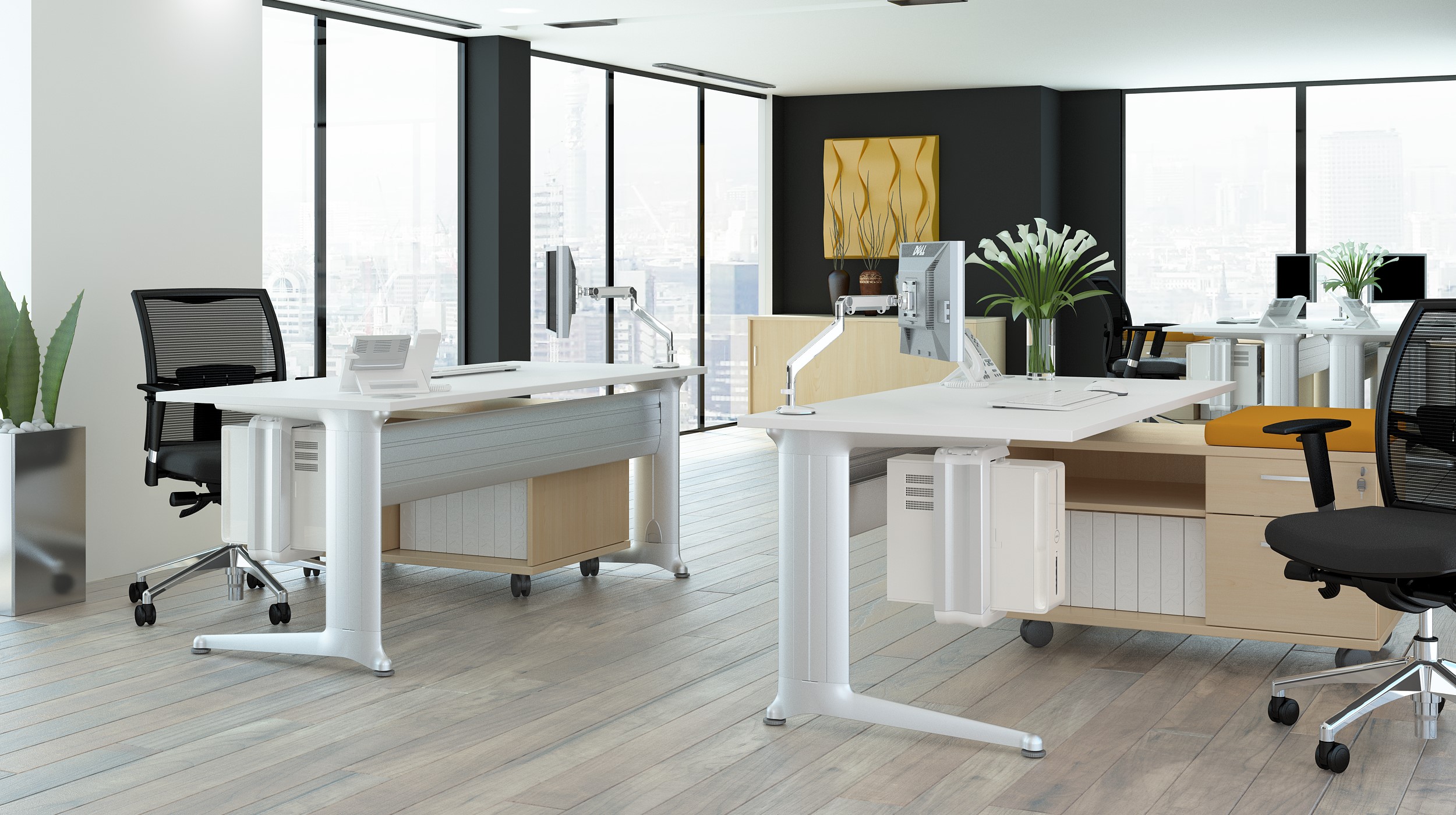 The Kassini range offers a myriad of options that fully utilise the unique wire management solution. Leg risers within the leg upright can be removed to enable cables to be routed vertically within the leg channel and directed into the modesty panel or wire management beam to discreetly house cables and wires.