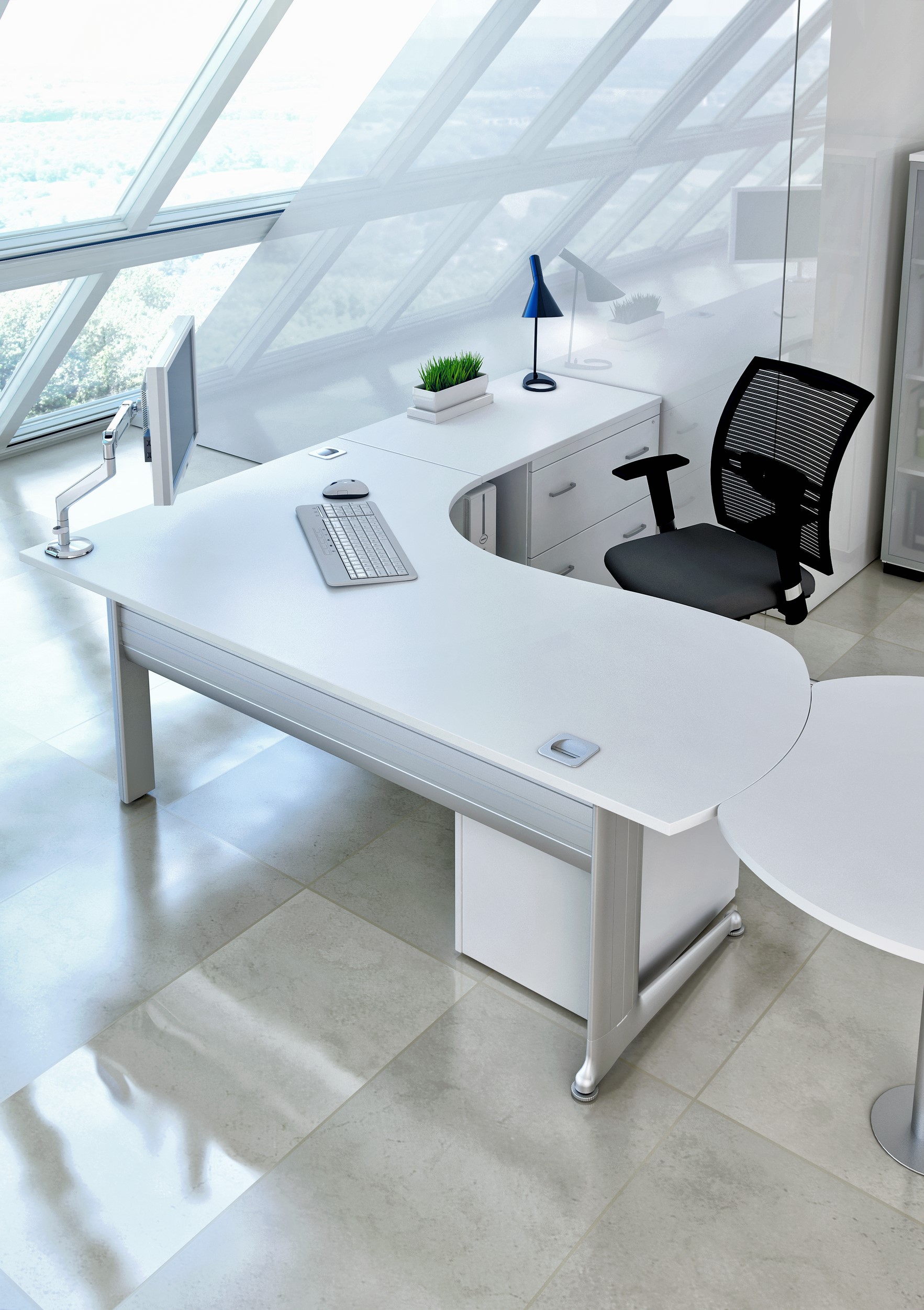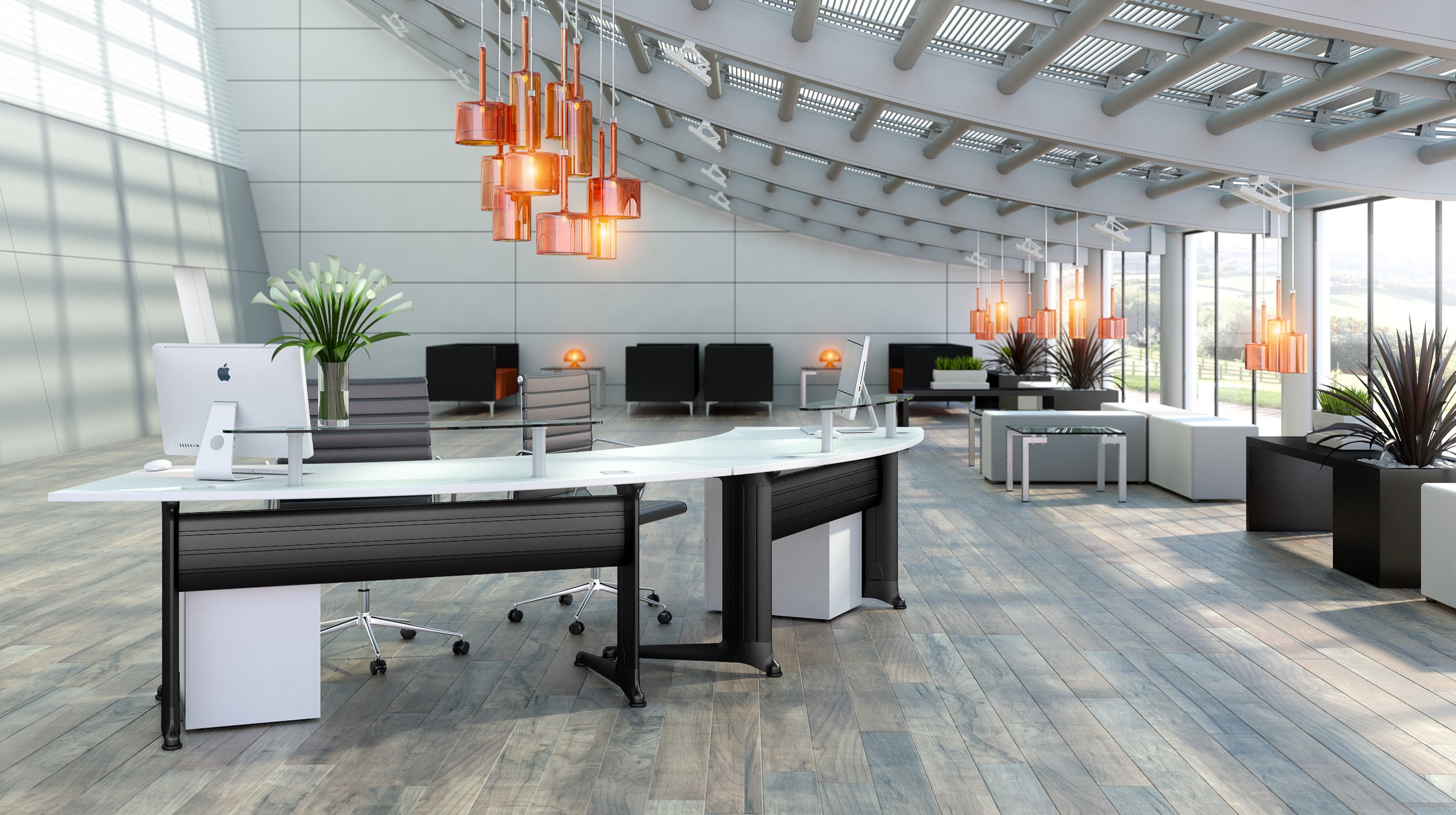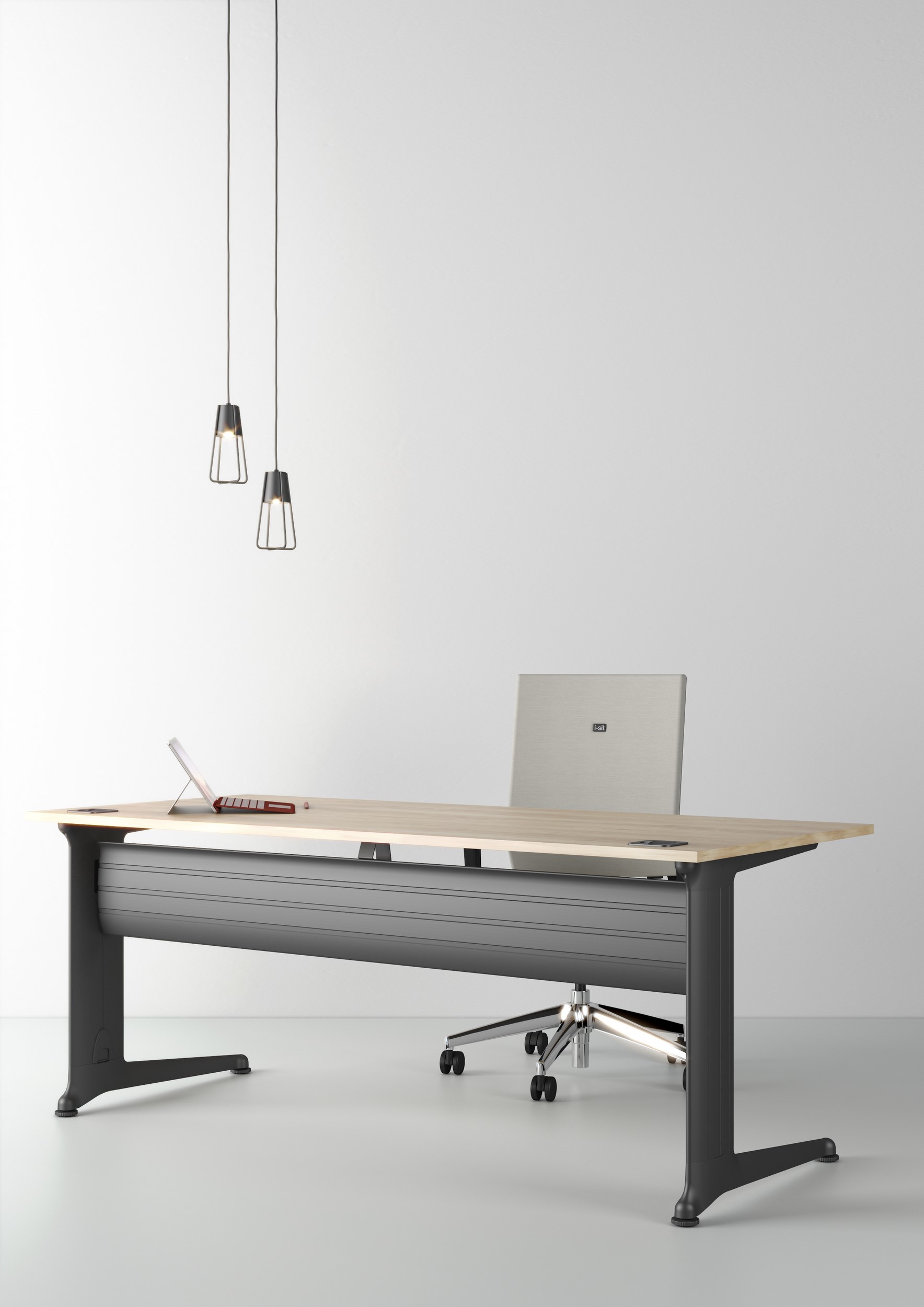 The Kassini range offers a myriad of options that fully utilise the unique wire management solution. Leg risers within the leg upright can be removed to enable cables to be routed vertically within the leg channel and directed into the modesty panel or wire management beam to discreetly house cables and wires.