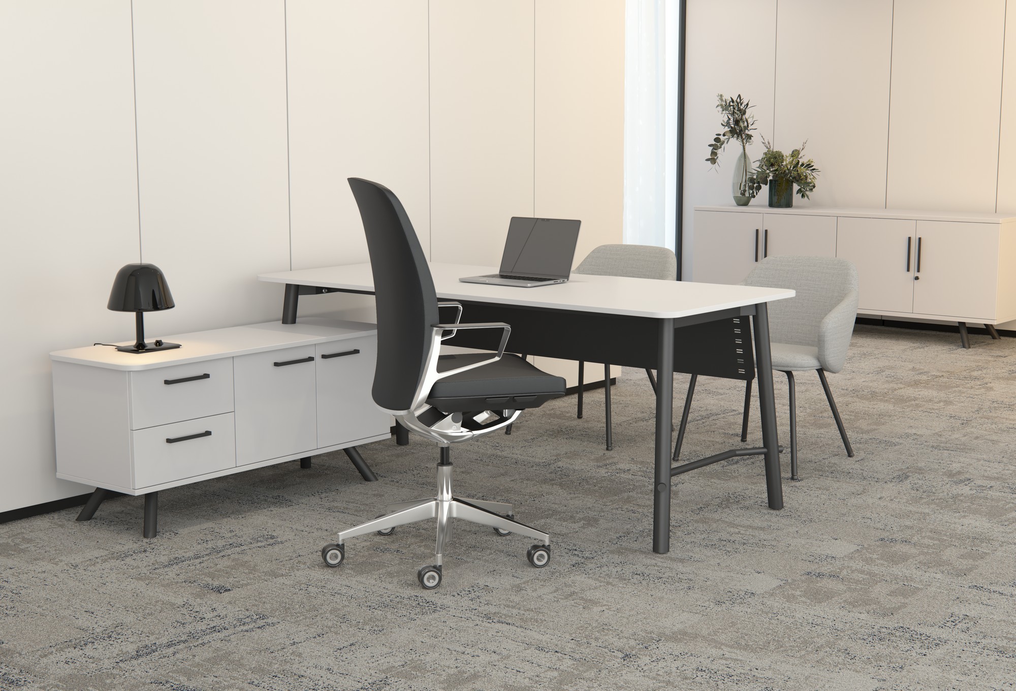 Hugo offers an executive seating range suited to sophisticated environments such as director’s offices, management suites and boardrooms. Upholstered in a luxurious black leather, the range is extremely durable, easy to care for, comfortable and environmentally friendly. The range offers the option of elegant chrome fixed arms or adjustable arm supports.