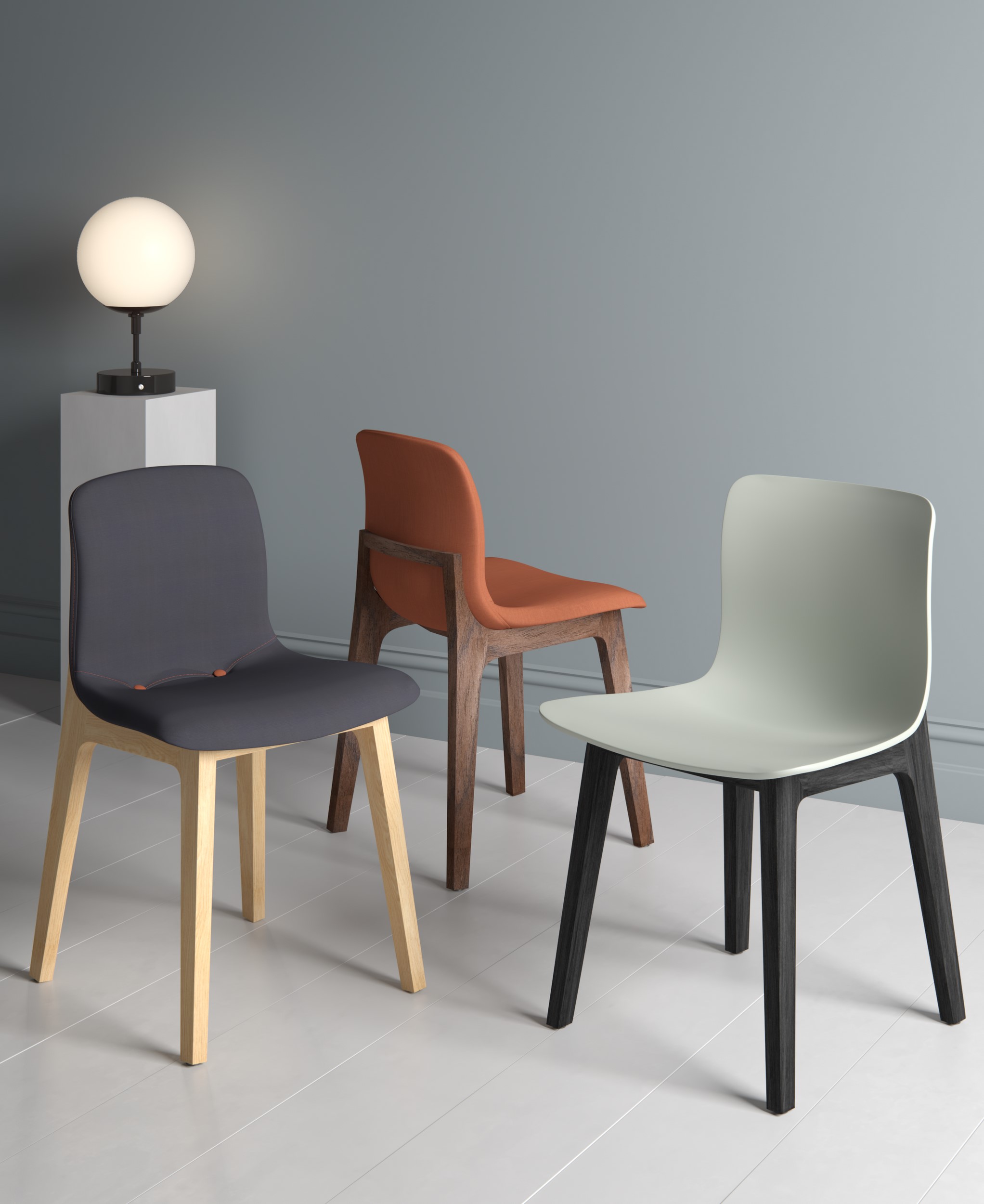 The chairs versatility is compounded by the choice of ash, walnut, espresso, wenge, black, grey or white wooden frame, sixteen exciting plastic shell colours or a fully upholstered option. Together these options offer a solution to numerous interiors and design requirements, in a number of environments.